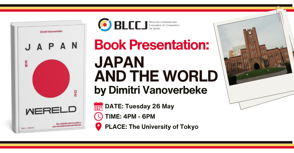 In view of the 160th anniversary of Belgium-Japan relations, the BLCCJ is delighted to invite you to a presentation by Belgian Professor Dimitri Vanoverbeke of the University of Tokyo, who will present his latest book “Japan and the World” (original Dutch title: Japan en de wereld), released in January 2026.