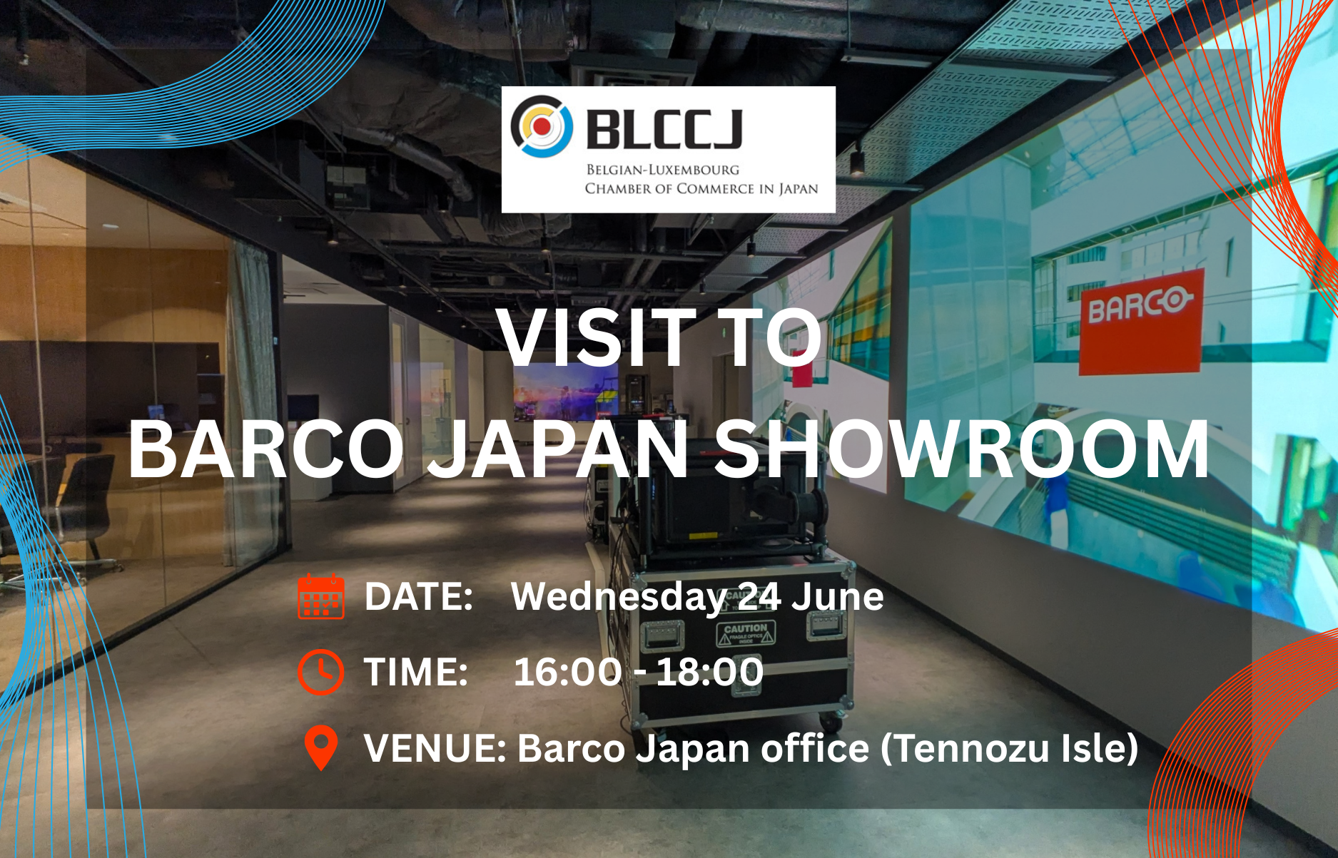 The program will feature a presentation by Barco Japan President Hironori Kato, followed by guided demonstrations of the projectors, displays, Clickshare and more. We will conclude the visit with a small networking moment – an excellent chance to connect with fellow BLCCJ members and expand your professional circle.