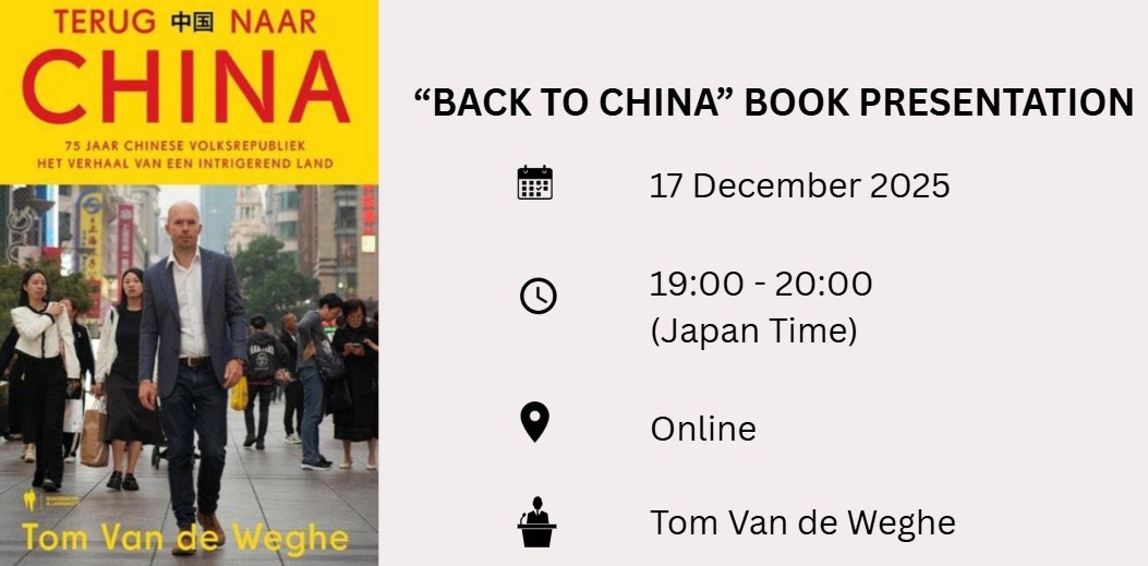 We are happy to announce the next event in the framework of the BeLux Asia Chambers Network: a webinar with Flemish journalist Tom Van de Weghe about his book “Terug naar China” (“Back to China”), taking place on Wednesday 17 December, from 19:00 to 20:00 JST.
